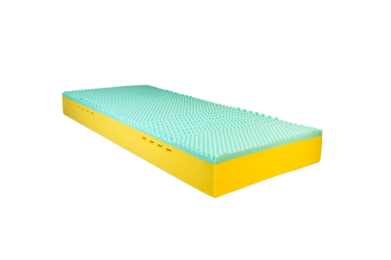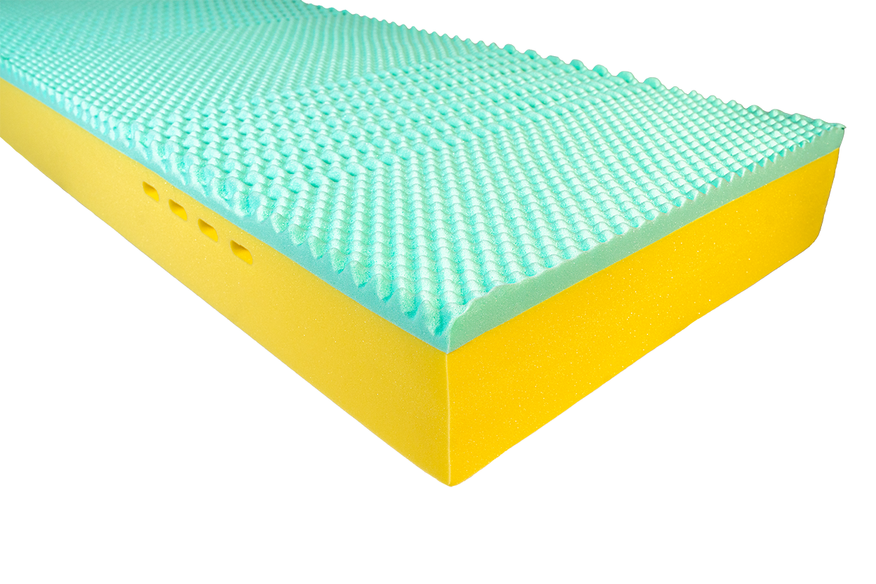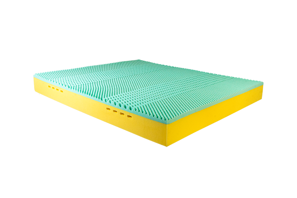 La lastra superiore è realizzata in Memory Foam viscoelastico verde, materiale ad alta adattabilità che reagisce al calore corporeo modellandosi perfettamente alle forme del corpo.