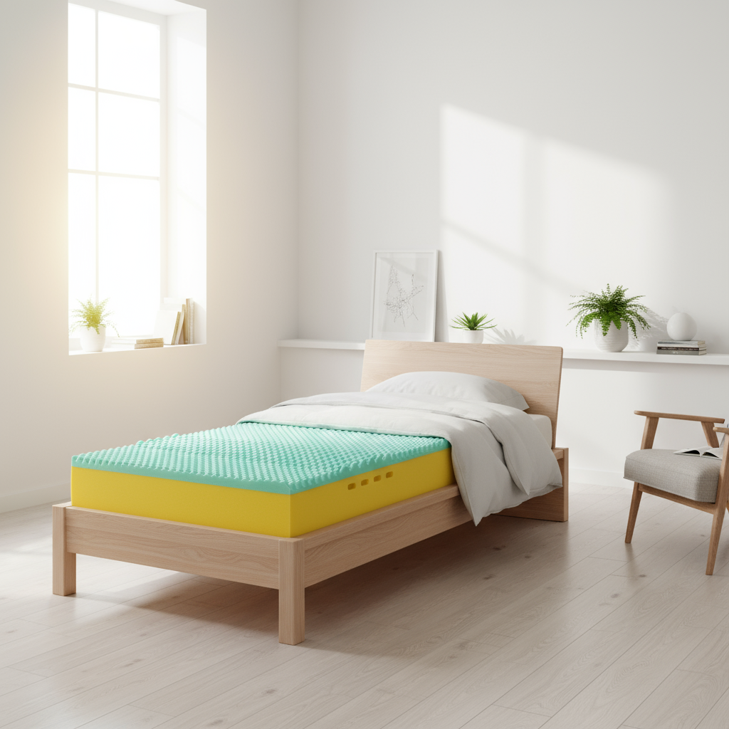 Strato superiore in Memory Foam viscoelastico verde con tamponcini micro-massaggianti.